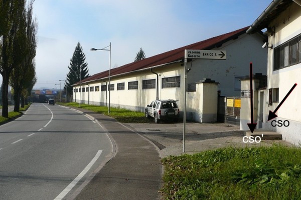 | Contrassegni | [{"simbolo_contrassegno":"B1","materializzazione":"(CSO) – Bullone infisso sulla facciata del edificio alla destra dell'entrata principale, in prossimit\u00e0 dello spigolo sinistro."},{"simbolo_contrassegno":"B4","materializzazione":"(CSO') – Centrino universale Inox infisso sulla sommit\u00e0 del basamento in cemento armato a destra dell'entrata."},{"simbolo_contrassegno":"B6","materializzazione":"(CSO'') – Centrino gps di tipo C infisso nel muro in cemento armato posto in corrispondenza dello spigolo est della Caserma Enrico F. Coincidente con IGM95 04A710."}] |