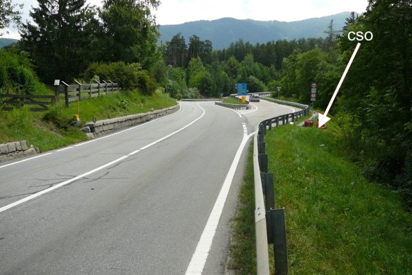 [{"simbolo_contrassegno":"B1","materializzazione":"(CSO) – Bullone infisso sul lato esterno del muro del tombino a valle della strada, all' altezza del bivio per le localit\u00e0 di Dobbiaco e Bressanone."}]