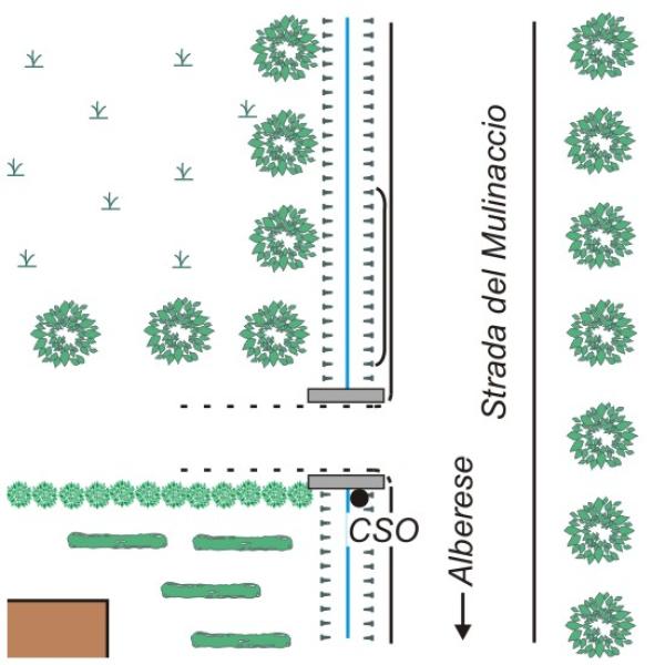| Contrassegni | [{"simbolo_contrassegno":"B1","materializzazione":"(CSO) – Bullone infisso sul muro posto a sostegno di un chiavicotto di passaggio acque reflue."}] |