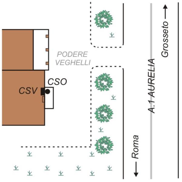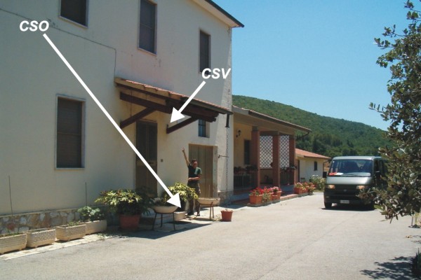 [{"simbolo_contrassegno":"P3","materializzazione":"(CSO) – Pozzetto posto sulla destra della porta di accesso alla casa, (N.B. il CSO \u00e8 misurabile solo con una stadia di 2 metri a causa di una tettoia)."},{"simbolo_contrassegno":"V1","materializzazione":"(CSV) – Mensola posta in corrispondenza del CSO, misurabile con difficolt\u00e0 a causa della tettoia."}]