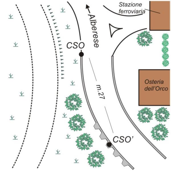 | Contrassegni | [{"simbolo_contrassegno":"B1","materializzazione":"(CSO) – Bullone infisso in testata del muro di sostegno del sottopasso che porta alla stazione di Alberese."},{"simbolo_contrassegno":"B4","materializzazione":"(CSO') – Centrino universale posto sul muro, stesso lato del cso, a circa 27 metri dalla testata del muro."}] |