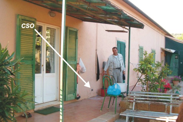 [{"simbolo_contrassegno":"B1","materializzazione":"(CSO) – BUllone infisso sul fianco destro della porta, facciata esposta a sud dell'edificio."}]