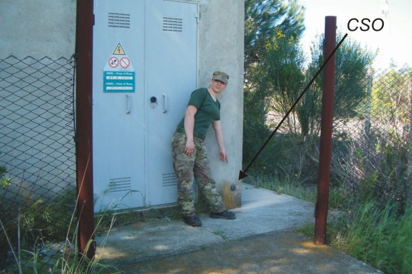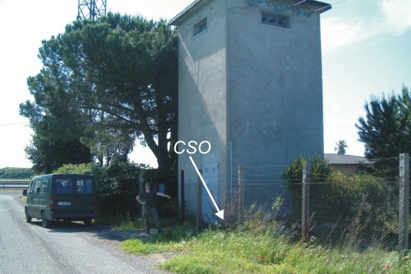 | Contrassegni | [{"simbolo_contrassegno":"B1","materializzazione":"(CSO) – Bullone infisso alla base destra rispetto la porta d'ingresso della cabina Enel."}] |