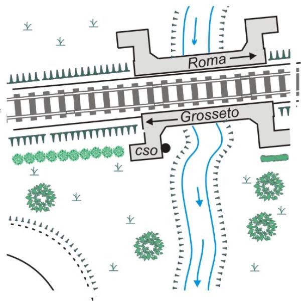 | Contrassegni | [{"simbolo_contrassegno":"B1","materializzazione":"(CSO) – Bullone infisso alla base della spalletta di sinistra del ponte della ferrovia, \"ponte ferroviario attraversamento fosso del Ponte Rotto\"."}] |