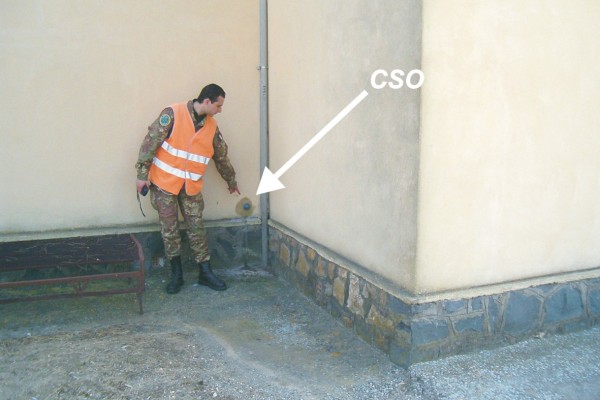 [{"simbolo_contrassegno":"B1","materializzazione":"(CSO) – Bullone infisso sull'angolo interno della parete, rivolta verso il lato strada."}]