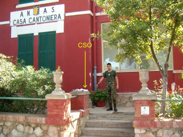 [{"simbolo_contrassegno":"P3","materializzazione":"(CSO) – Chisino alla base della facciata, presso lo spigolo destro dell'avancorpo prospicente la S.S.1 Aurelia."},{"simbolo_contrassegno":"B6","materializzazione":"(CSO') – Centrino tipo \"GPS C\" IGM95 n\u00b0 135703 infisso sull tombino in calcestruzzo, a 20 cm dallo spigolo Nord , sito lungo il lato opposto della S.S.1, all'altezza del parcheggio di un albergo."}]