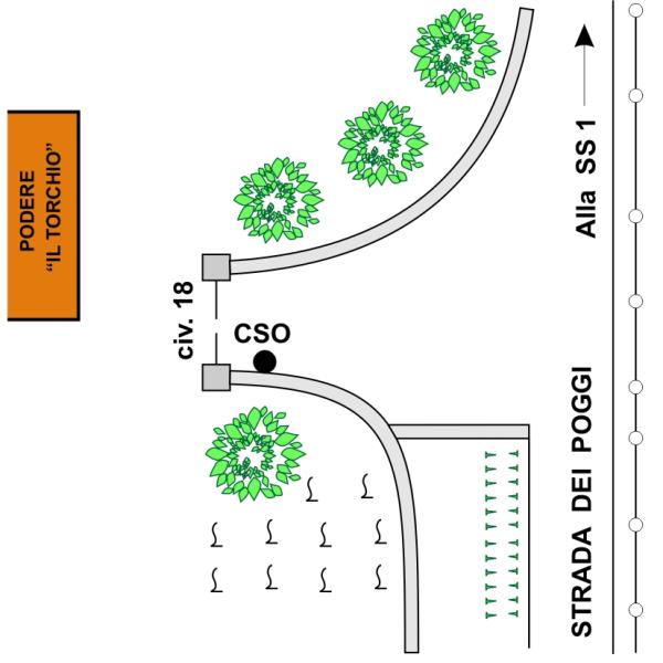 | Contrassegni | [{"simbolo_contrassegno":"B1","materializzazione":"(CSO) – Bullone infisso nel muro sinistro di invito al cancello di accesso al Podere \" IL TORCHIO \" ."}] |