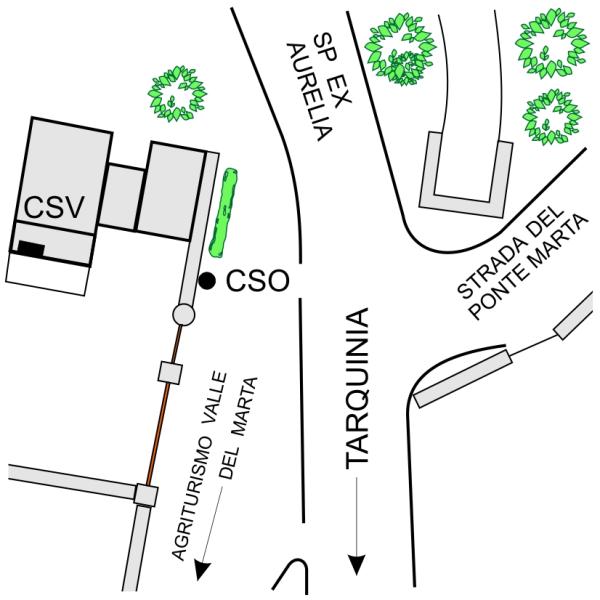[{"simbolo_contrassegno":"B1","materializzazione":"(CSO) – Bullone infisso alla base del muro di recinzione di destra del cancello d'ingresso del Podere Ponte Marta."},{"simbolo_contrassegno":"V1","materializzazione":"(CSV) – Mensola infissa nella facciata dell'abitazione a destra della porta."}]