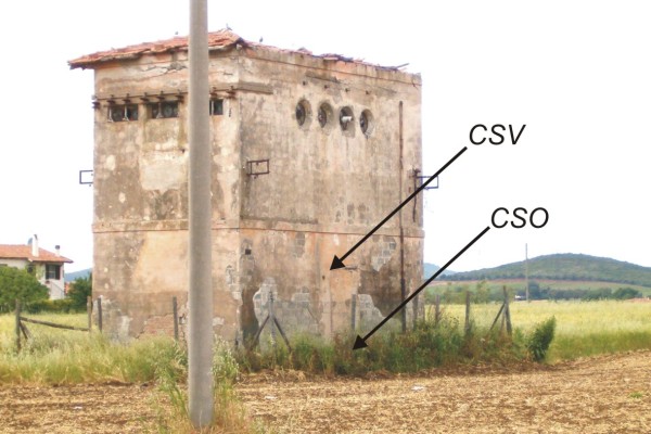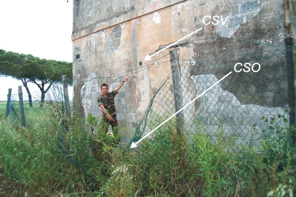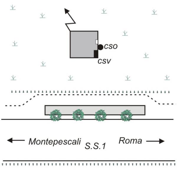 [{"simbolo_contrassegno":"P3","materializzazione":"(CSO) – Chiusino in ghisa posto a sinistra della porta della cabina, attualmente murata perch\u00e8 si apre sulla parete rivolta verso Roma; a circa 40 m. da una piazzola di sosta, sulla destra della statale in direzione Montepescali."},{"simbolo_contrassegno":"V1","materializzazione":"(CSV) – Mensola infissa sulla stessa parete, a sinistra della porta murata, in corrispondenza del CSO."}]
