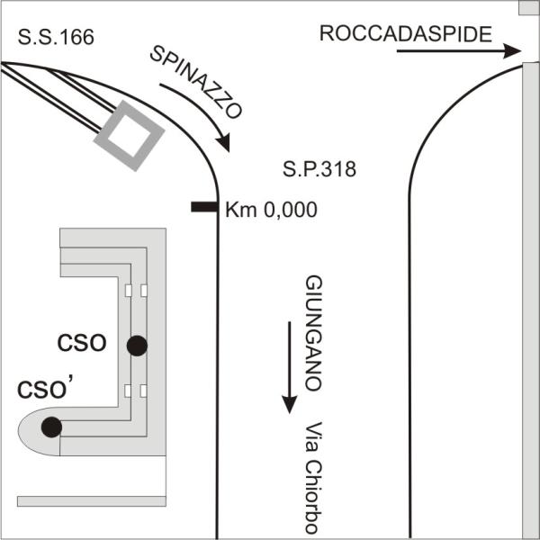 | Contrassegni | [{"simbolo_contrassegno":"B1","materializzazione":"(CSO) – Bullone infisso nell'alzata , in cemento armato della terza seduta dell'anfiteatro al Km 0 della S.P.318 ."},{"simbolo_contrassegno":"B4","materializzazione":"(CSO') – Centrino universale (orizzontale) infisso sulla prima seduta , nell'estremo curvo dell'ala destra dell'anfiteatro ."}] |