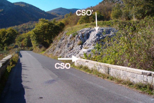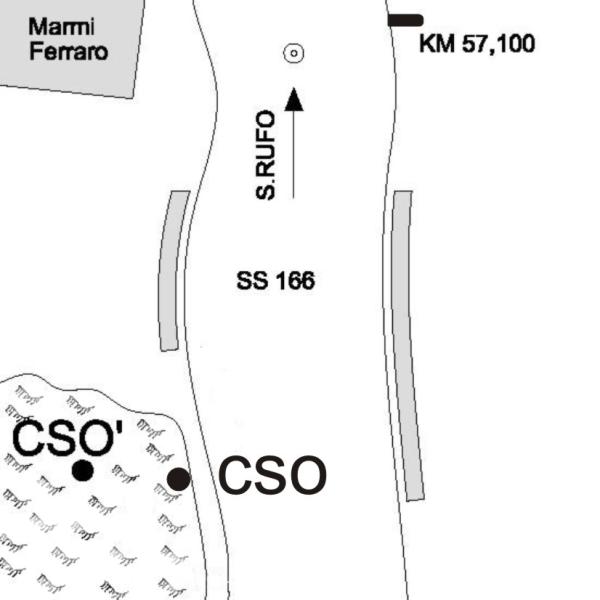 [{"simbolo_contrassegno":"B1","materializzazione":"(CSO) – Bullone infisso nella banco roccioso, appena prima del ponticello, lato monte in direzione S. Rufo ."},{"simbolo_contrassegno":"B4","materializzazione":"(CSO') – Centrino universale (orizzontale) infisso alla sommit\u00e0 dello stesso banco roccioso nella zona d'angolo prossimo al CSO ."}]