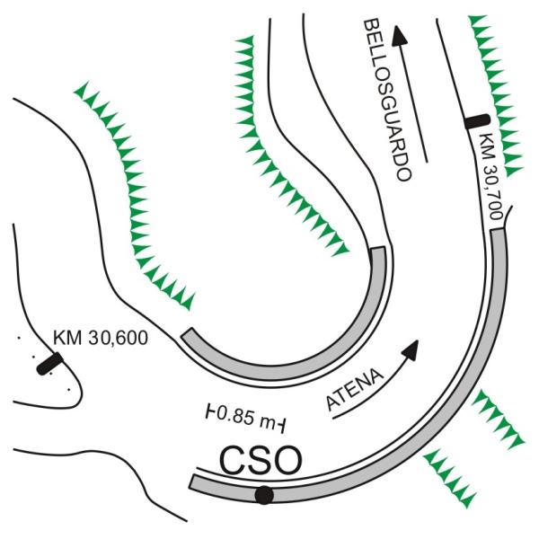 [{"simbolo_contrassegno":"B4","materializzazione":"(CSO) – Centrino universale infisso sul muretto (cordolo in calcestruzzo) prima della pietra chilometrica 30,700 in direzione Atena ."}]
