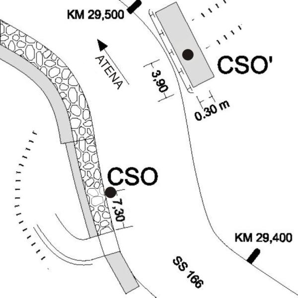 | Contrassegni | [{"simbolo_contrassegno":"B1","materializzazione":"(CSO) – Bullone infisso nel muro di scarpa all'altezza del km 29,400 della S.S.166 ."},{"simbolo_contrassegno":"B4","materializzazione":"(CSO') – Centrino universale (orizzontale) infisso sulla superficie superiore del manufatto in cemento armato adiacente il Km 29,500 ."}] |