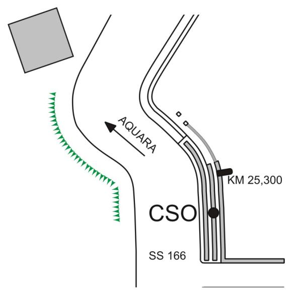 [{"simbolo_contrassegno":"B1","materializzazione":"(CSO) – Bullone infisso nell muro di scarpa al km 25,300 della S.S. 166 ."}]