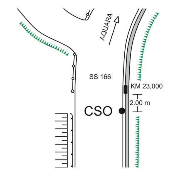 [{"simbolo_contrassegno":"B1","materializzazione":"(CSO) – Bullone infisso nel muro a retta a destra del km 23,000 della S.S.166 ."}]