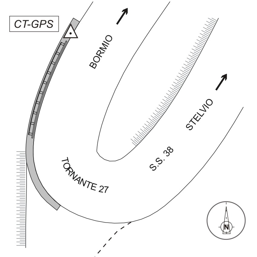 | materializzazione | Centrino metallico della Regione Lombardia, infisso presso l'estremità nord del cordolo in calcestruzzo, del muro di sostegno della S.S.38, nei pressi del Km 133,500 e del tornante 27, lato destro in direzione Stelvio. |