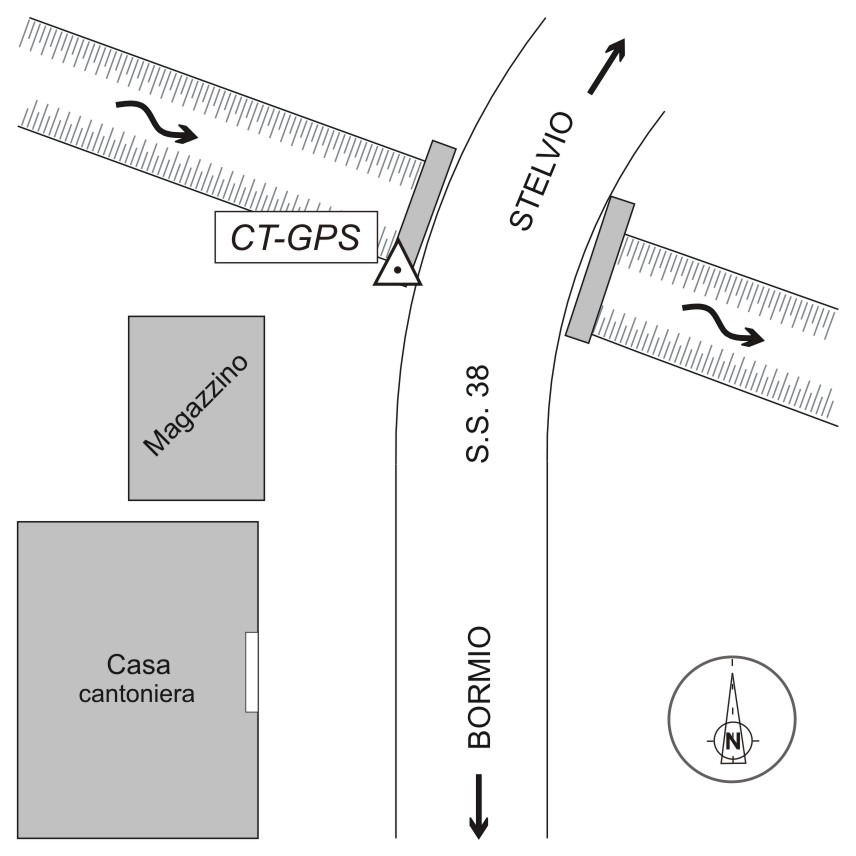 | materializzazione | Centrino in acciaio inox del tipo"universale", infisso sul cordolo in calcestruzzo di un tombino per la raccolta di acque piovane, posto sul lato della sede stradale in direzione Bormio. |