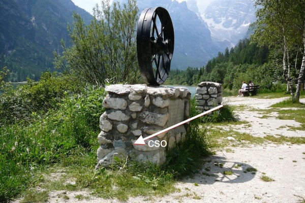 [{"simbolo_contrassegno":"B1","materializzazione":"(CSO) – Bullone infisso sul basamento in pietre naturali del monumento ad Andreas Tschrtschenthaler (\"Antriebsrad\") sulla facciata volta verso Dobbiaco."},{"simbolo_contrassegno":"B4","materializzazione":"(CSO') – Centrino universale infisso sulla sommit\u00e1 di un grosso sasso a livello del suolo."}]