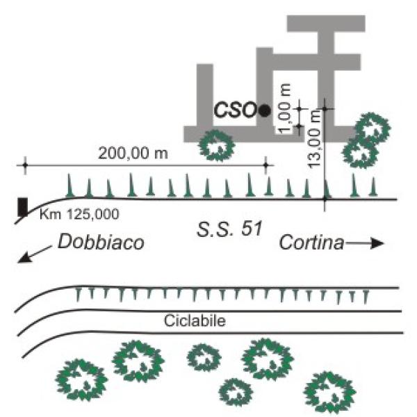 | Contrassegni | [{"simbolo_contrassegno":"B4","materializzazione":"(CSO) – Centrino universale infisso sulla sommit\u00e1 della seconda fondazione a striscia ancora esistente della vecchia cantoniera, a destra della strada in direzione Dobbiaco."}] |