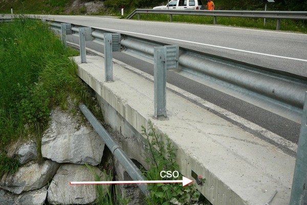 | Contrassegni | [{"simbolo_contrassegno":"B1","materializzazione":"(CSO) – Bullone infisso nel cordolo del guard-rail del ponte, lato a valle, in riva sinistra."}] |