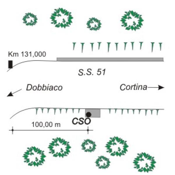 | Contrassegni | [{"simbolo_contrassegno":"B4","materializzazione":"(CSO) – Centrino universale infisso sulla sommit\u00e1 del manufatto in cemento armato, a destra della strada, in testata, in direzione di Cortina."}] |