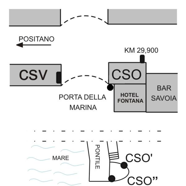 [{"simbolo_contrassegno":"B1","materializzazione":"(CSO) – Bullone infisso nella faccia interna all'arco, spalla adiacente l'Hotel Fontana."},{"simbolo_contrassegno":"B6","materializzazione":"(CSO') Centrino IGM95 \"GPS C\" 197903 infisso nella platea terminale del molo antistante l'hotel Fontana."},{"simbolo_contrassegno":"B4","materializzazione":"(CSO\") – Centrino universale (orizzontale) ADB destra sele CS n. 13 infisso nella platea terminale del molo."},{"simbolo_contrassegno":"V6","materializzazione":"(CSV) – Piastrina con cilindretto infisso nel muro fronte interno all'arco, a destra della lapide."}]