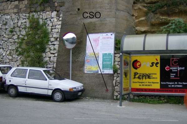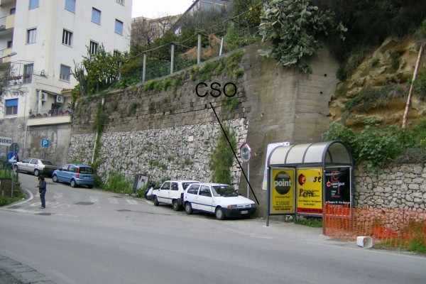 [{"simbolo_contrassegno":"B1","materializzazione":"(CSO) – Bullone infisso alla base della parete in cemento armato di un muro di sostegno, in corrispondenza del bivio tra la Via Filangieri eVia Cavottole, lato destro direzione Napoli."}]