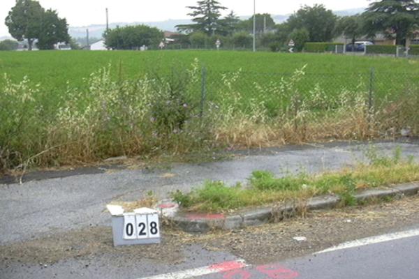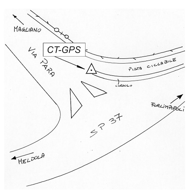 | Materializzazione | Centrino metallico infisso sul cordolo della pista ciclabile situato nei pressi dello svincolo tra la S.P. 37 e Via Para. |