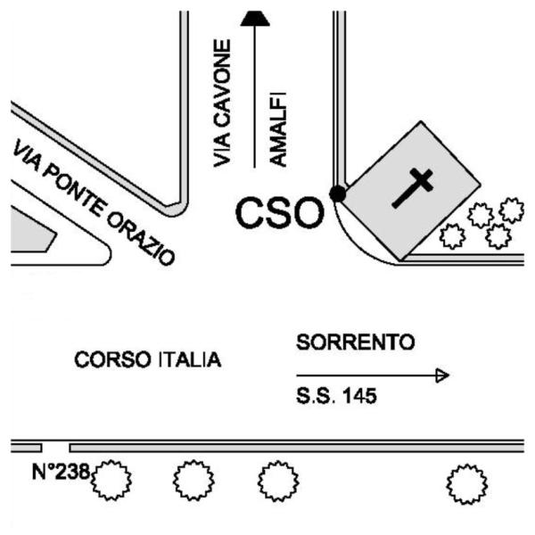 | Contrassegni | [{"simbolo_contrassegno":"B1","materializzazione":"(CSO) – Bullone infisso alla base della facciata della Cappella del Ges\u00f9 Redentore, in prossimit\u00e0 dello spigolo sinistro in corrispondenza del bivio tra la S.S.145 (Corso Italia) e Via Cavone."}] |