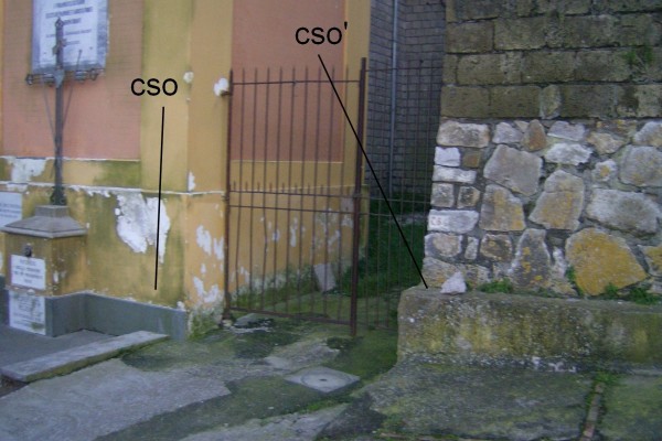 | Contrassegni | [{"simbolo_contrassegno":"B1","materializzazione":"(CSO) – Bullone infisso nella facciata della chiesa dei Colli di Fontanelle in prossimit\u00e0 dello spigolo destro."},{"simbolo_contrassegno":"B4","materializzazione":"(CSO) – Centrino universale (orizzontale) infsso sul cordolo del fabbricato immediatamente a destra della chiesa al numero civico 10 presso l'estremit\u00e0 sinistra."}] |
