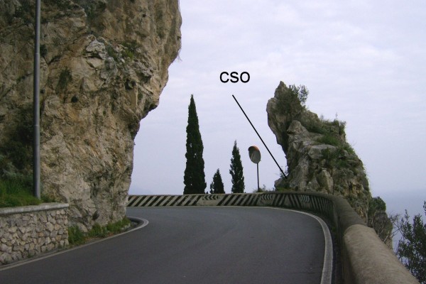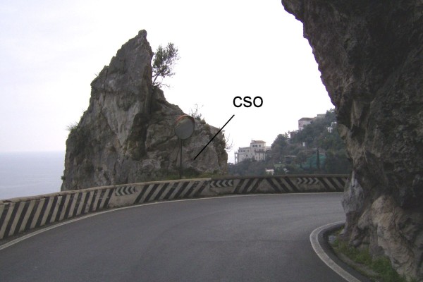 | Contrassegni | [{"simbolo_contrassegno":"B1","materializzazione":"(CSO) – Bullone infisso nello sperone di roccia in prossimit\u00e0 del Km 26,400 , sul lato sinistro procedendo verso Praiano."}] |