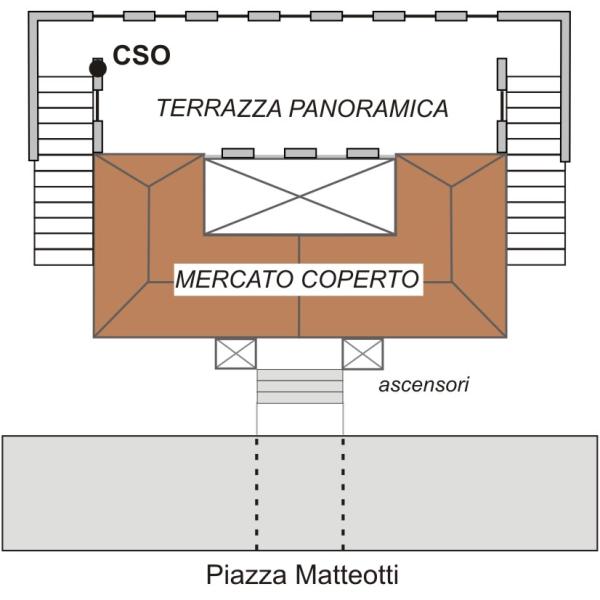 [{"simbolo_contrassegno":"B6","materializzazione":"(CSO) – Centrino IGM95 del \"tipo D\" infisso nella spalletta della scala della terrazza panoramica sovrastante il mercato coperto, con accesso da Piazza Matteotti, passando dentro il palazzo del Capitano del Popolo."}]