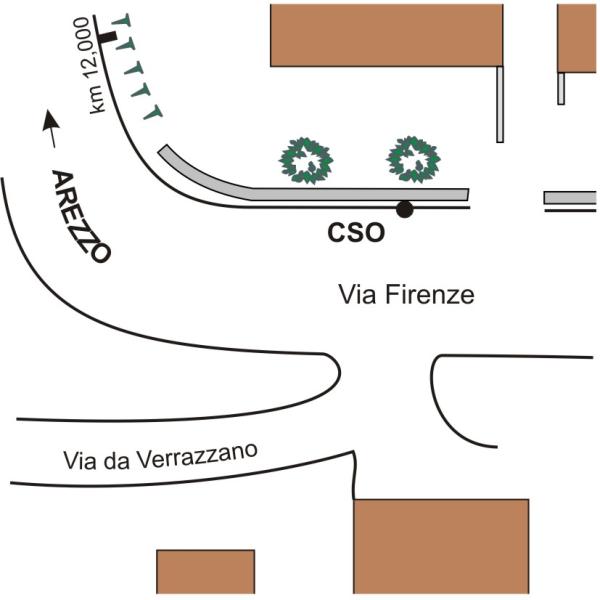 | Contrassegni | [{"simbolo_contrassegno":"B1","materializzazione":"(CSO) – Bullone infisso sul muretto reggispinta in pietra, lato destro, della strada in direzione Arezzo."}] |