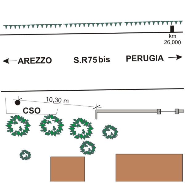 | Contrassegni | [{"simbolo_contrassegno":"P3","materializzazione":"(CSO) – Chiusino in ghisa posto al margine della strada, lato sinistro direzione Arezzo, a valle della piazzola."}] |