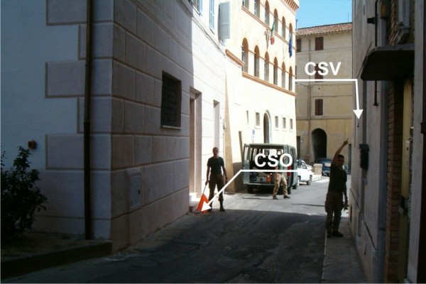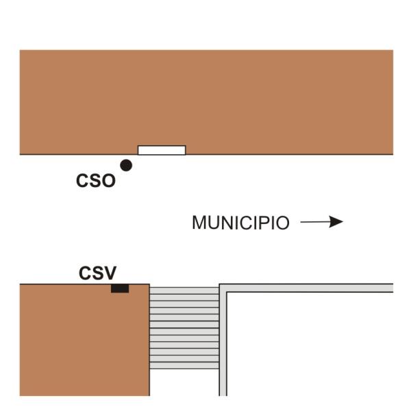 | Contrassegni | [{"simbolo_contrassegno":"P2","materializzazione":"(CSO) – Chiusino in ghisa posto alla base della facciata, a sinistra della porta dell'edificio."},{"simbolo_contrassegno":"V1","materializzazione":"(CSV) – Mensola infissa sulla facciata del fabbricato, di fronte al CSO, presso lo spigolo di sinistra."}] |