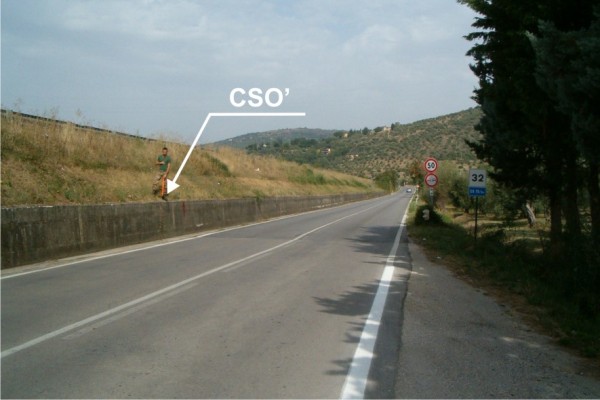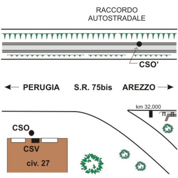 | Contrassegni | [{"simbolo_contrassegno":"P3","materializzazione":"(CSO) – Chiusino in ghisa posto alla base della facciata, a destra della porta d'ingresso. A non misurabille in quanto coperto da pavimentazione."},{"simbolo_contrassegno":"B6","materializzazione":"(CSO') – Centrino del tipo \"GPS C\" fissato sul bordo superiore del muro di sottoscarpa in calcestruzzo del raccordo A1-Perugia, in corrispondenza del Km 32,000 della S.S.75 bis del Lago Trasimeno."},{"simbolo_contrassegno":"V1","materializzazione":"(CSV) – Mensola infissa sulla facciata, a destra della porta d'ingresso al civico 27."}] |