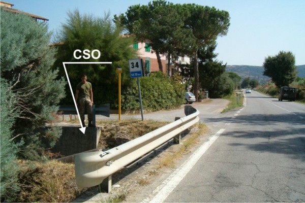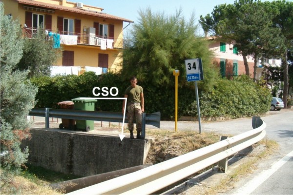 | Contrassegni | [{"simbolo_contrassegno":"B1","materializzazione":"(CSO) – Bullone infisso su una sponda del fosso, a ridosso del ponticello, a destra della strada, in direzione Arezzo."}] |
