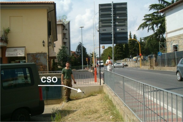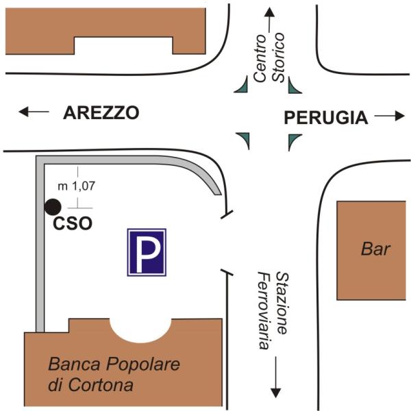 [{"simbolo_contrassegno":"B1","materializzazione":"(CSO) – Bullone infisso nel muro di recinzione del parcheggio della banca."}]
