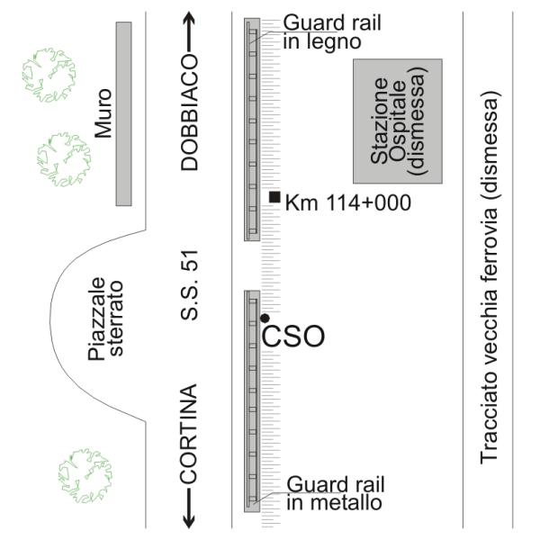 | Contrassegni | [{"simbolo_contrassegno":"B1","materializzazione":"(CSO) – Bullone infisso esternamente al cordolo di vallle che sostiene il guardrail a circa 1 m dall'estremo."}] |