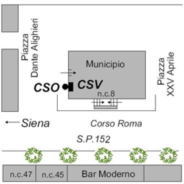 | Contrassegni | [{"simbolo_contrassegno":"P2","materializzazione":"(CSO) – Chiusino in ghisa di II categoria interrato alla base del fianco sinistro, a destra della porta d'ingresso degli uffici comunali."},{"simbolo_contrassegno":"V1","materializzazione":"(CSV) – Mensola posta sul fianco sinistro, in corrispondenza del CSO."}] |