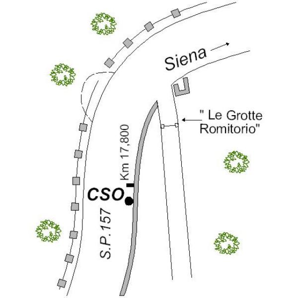 | Contrassegni | [{"simbolo_contrassegno":"B1","materializzazione":"(CSO) – Bullone infisso su di un muro di contenimento ( in blocchi di pietra) presso la pietra ettometrica Km 17,800, sulla destra della S.P.157 in direzione Roccastrada."}] |