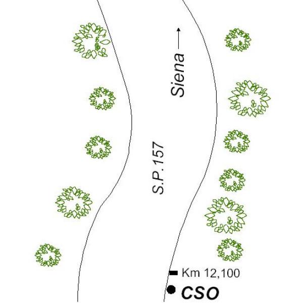 | Contrassegni | [{"simbolo_contrassegno":"P5","materializzazione":"(CSO) – Pozzetto di IV categoria posto a bordo strada (S.P. 157) lato destro in direzione Roccastrada presso la pietra ettometrica Km 12,100; protetto da tubo in plastica e tappo in ghisa."}] |