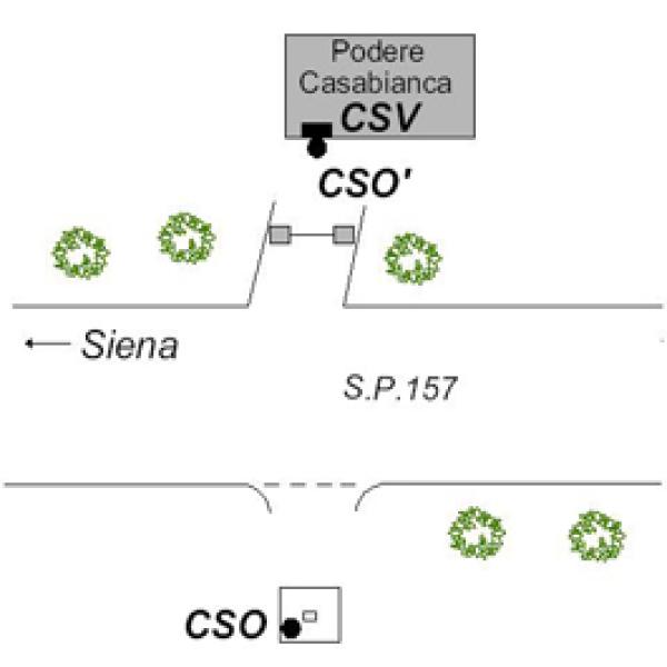 | Contrassegni | [{"simbolo_contrassegno":"B4","materializzazione":"(CSO) – Centrino universale infisso su di un tombino in cemento armato al lato sinistro della strada in direzione Montepescali."},{"simbolo_contrassegno":"P3","materializzazione":"CSO') – Chiusino in ghisa di III categoria interrato alla base della facciata volta alla S.P."},{"simbolo_contrassegno":"V1","materializzazione":"(CSV) – Mensola infissa sulla medesima facciata in corrispondenza del CSO'."}] |