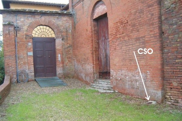 | Contrassegni | [{"simbolo_contrassegno":"P5","materializzazione":"(CSO) – Pozzetto di IV categoria interrato alla base della facciata destra a 3,10 metri a destra della porta; rialzato con tubo in plastica e tappo in ghisa."}] |