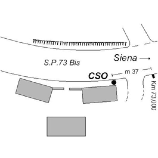 | Contrassegni | [{"simbolo_contrassegno":"P5","materializzazione":"(CSO) – Pozzetto di IV categoria interrato alla base della facciata ex chiesetta, spigolo verso Siena."}] |
