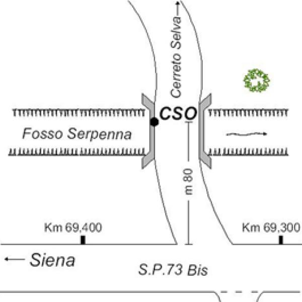 [{"simbolo_contrassegno":"B4","materializzazione":"(CSO) – Centrino universale infisso sulla sommit\u00e0 del blocco destro del parapetto del ponte, lato verso Siena."}]