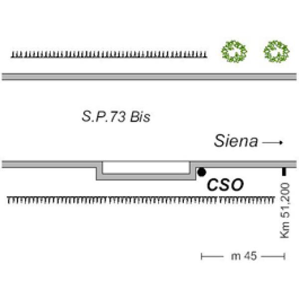 | Contrassegni | [{"simbolo_contrassegno":"P3","materializzazione":"(CSO) – Chiusino in ghisa di III categoria interrato nell'angolo formato dalla piazzola e la strada, lato Siena, 100 metri prima del ponte sul torrente Feccia."}] |