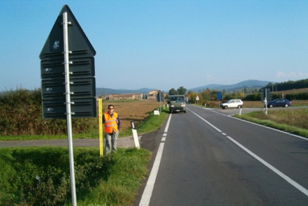 | Contrassegni | [{"simbolo_contrassegno":"B1","materializzazione":"(CSO) – Bullone infisso nella parte esterna del muro di contenimento della strada, a circa 40 metri dal bivio per Massa Marittima, a destra verso Siena."}] |