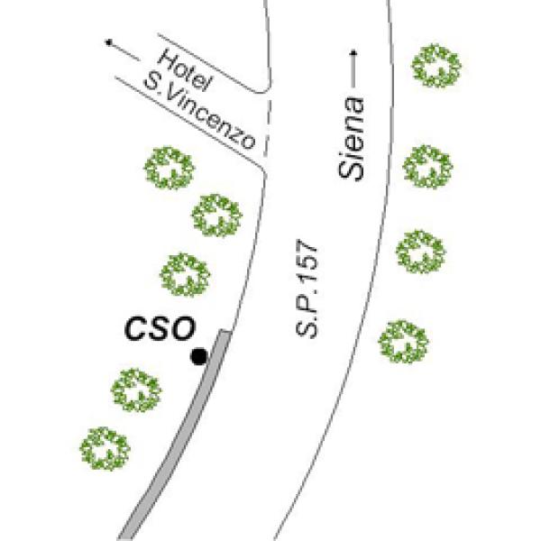 | Contrassegni | [{"simbolo_contrassegno":"P5","materializzazione":"(CSO) – Pozzetto di IV categoria con centrino metallico rialzato da tubo in plastica e tappo in ghisa interrato a ridosso del muro di sostegno della scarpata, in prossimit\u00e0 della testata, lato destro del muretto verso Siena."}] |
