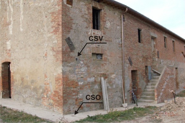| Contrassegni | [{"simbolo_contrassegno":"P2","materializzazione":"(CSO) – Chiusino in ghisa posto in prossimit\u00e0 dello spigolo sinistro della facciata del casolare."},{"simbolo_contrassegno":"V1","materializzazione":"(CSV) – Mensola infissa sulla parete del casolare in corrispondenza del CSO."}] |